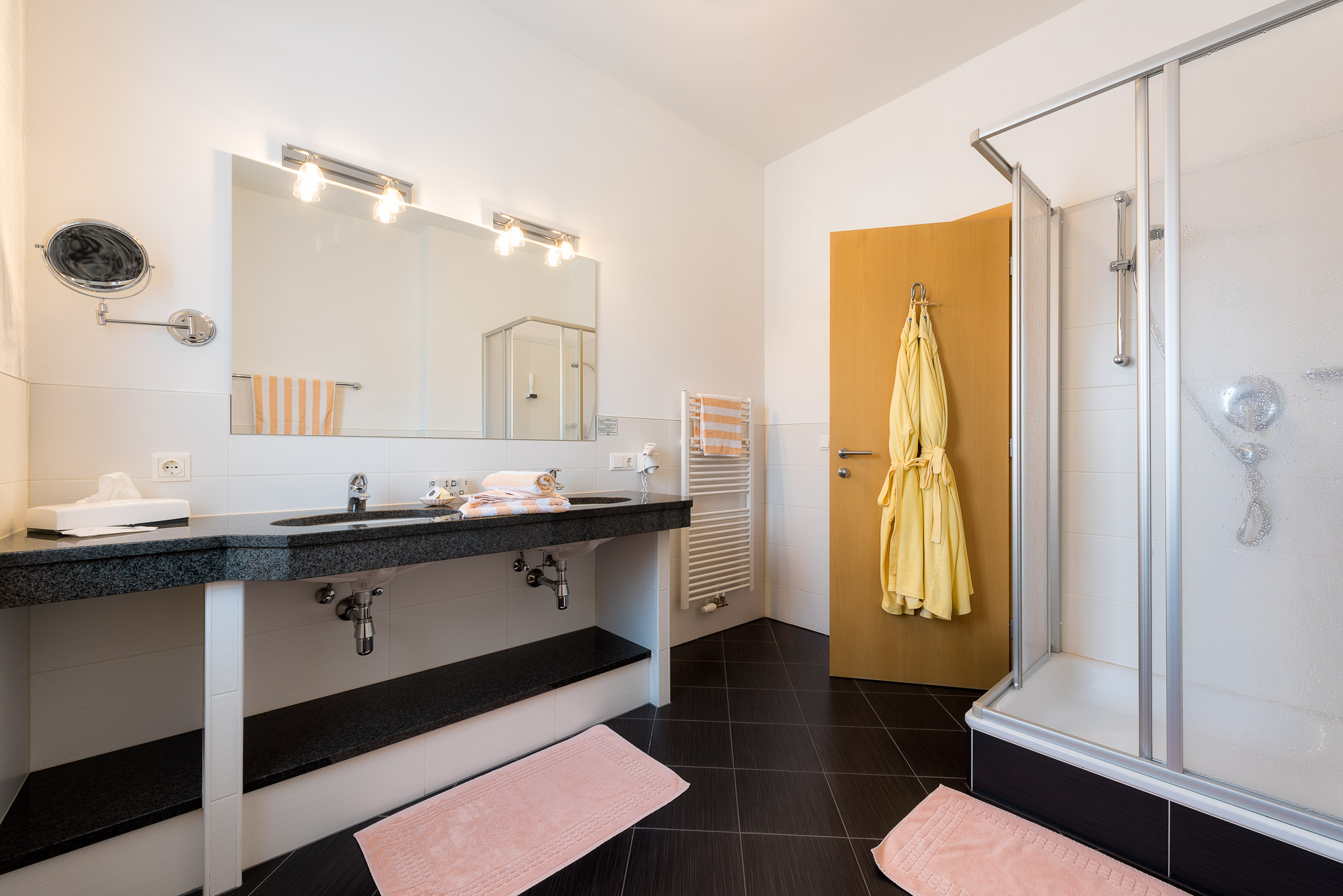 Kaunergrat bay window suite with approx. 50 m², suite with two separate bedrooms for 2 to 3 people, private balcony with morning sun, shower, double washbasin, hairdryer, make-up mirror, separate WC, safe, radio receivable via TV, mini-fridge, WLAN, satellite TV, cosy seating area with stove.